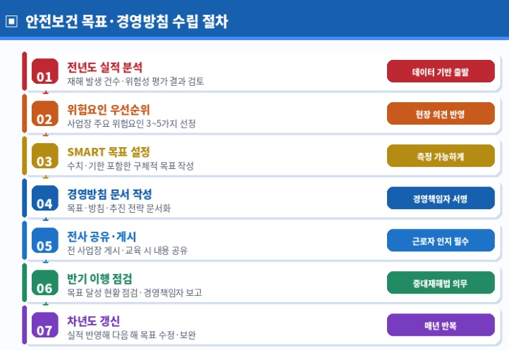 4. 안전보건 목표·경영방침 수립 7단계 절차