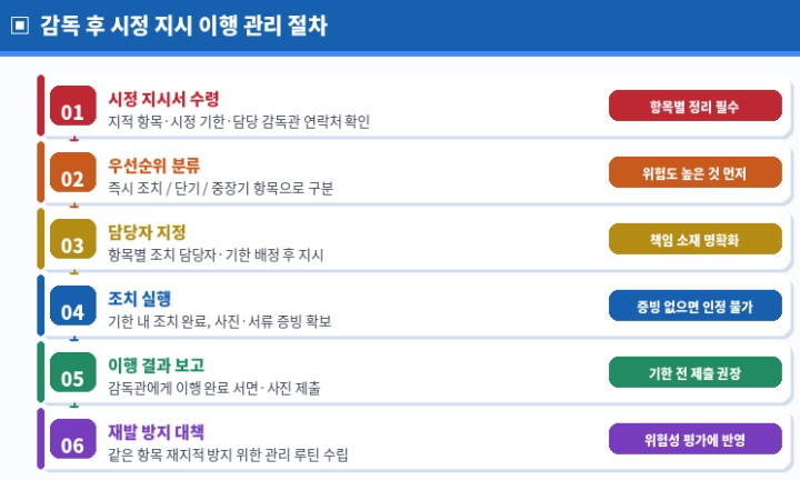 감독이 끝나고 시정 지시서가 나왔다. 5가지 지적 항목과 각각의 시정 기한이 적혀 있었다. 처음 보는 공문 형식이라 어떻게 처리해야 하는지 몰랐다.